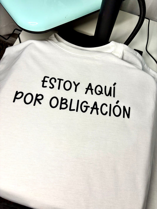 Estoy Aqui por Obligación T-shirt | Exprésate! Camisa con mensaje