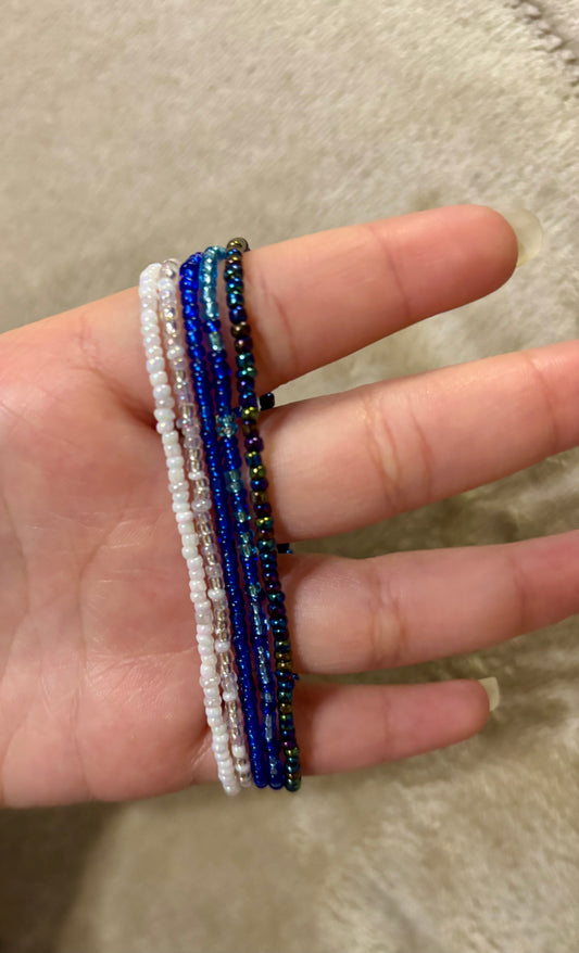 Blue and White Glass Beaded Bracelet Set
