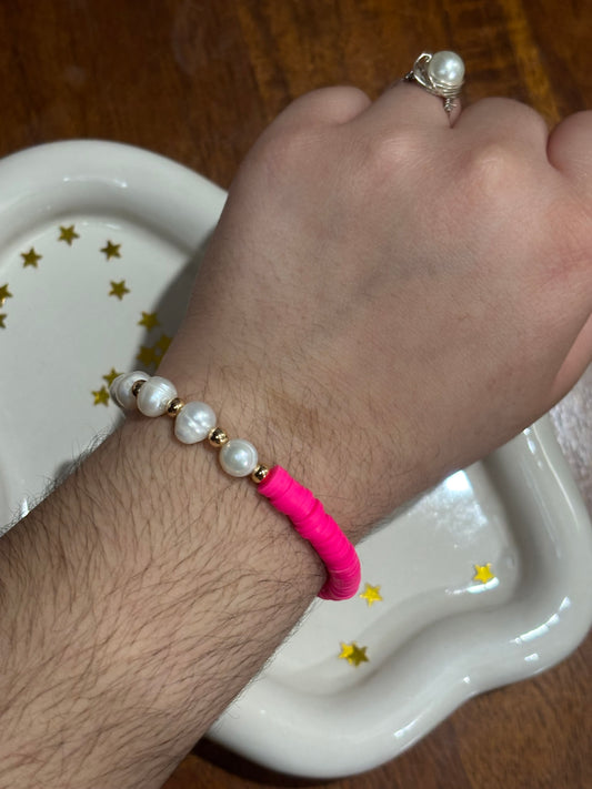 Freshwater Pearl with Clay Beads & 18k Gold-Plated Stainless Steel beads Elegant Handmade Bracelets Stylish Bracelets Unique and Stylish.