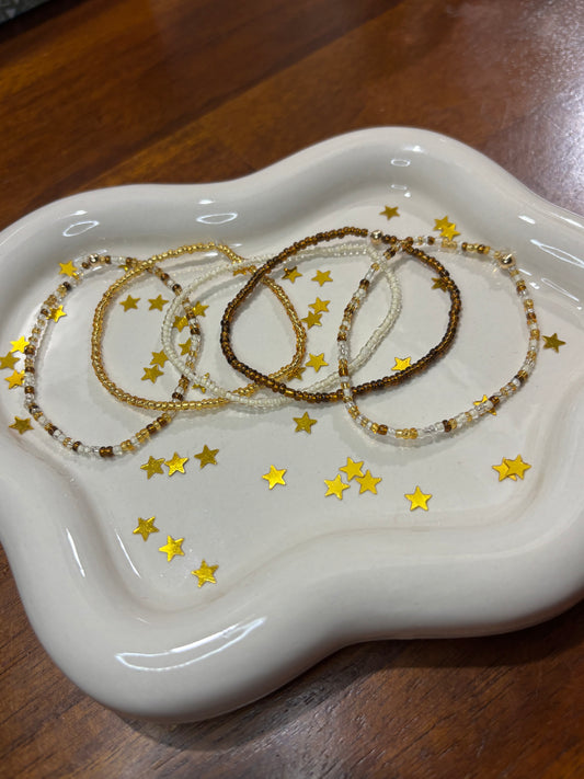 Gold and Brown Glass Beaded Bracelet Set - Handmde Stackable Bracelet - Elegant, Stackable, Stretchy and Boho - Minimalist Style