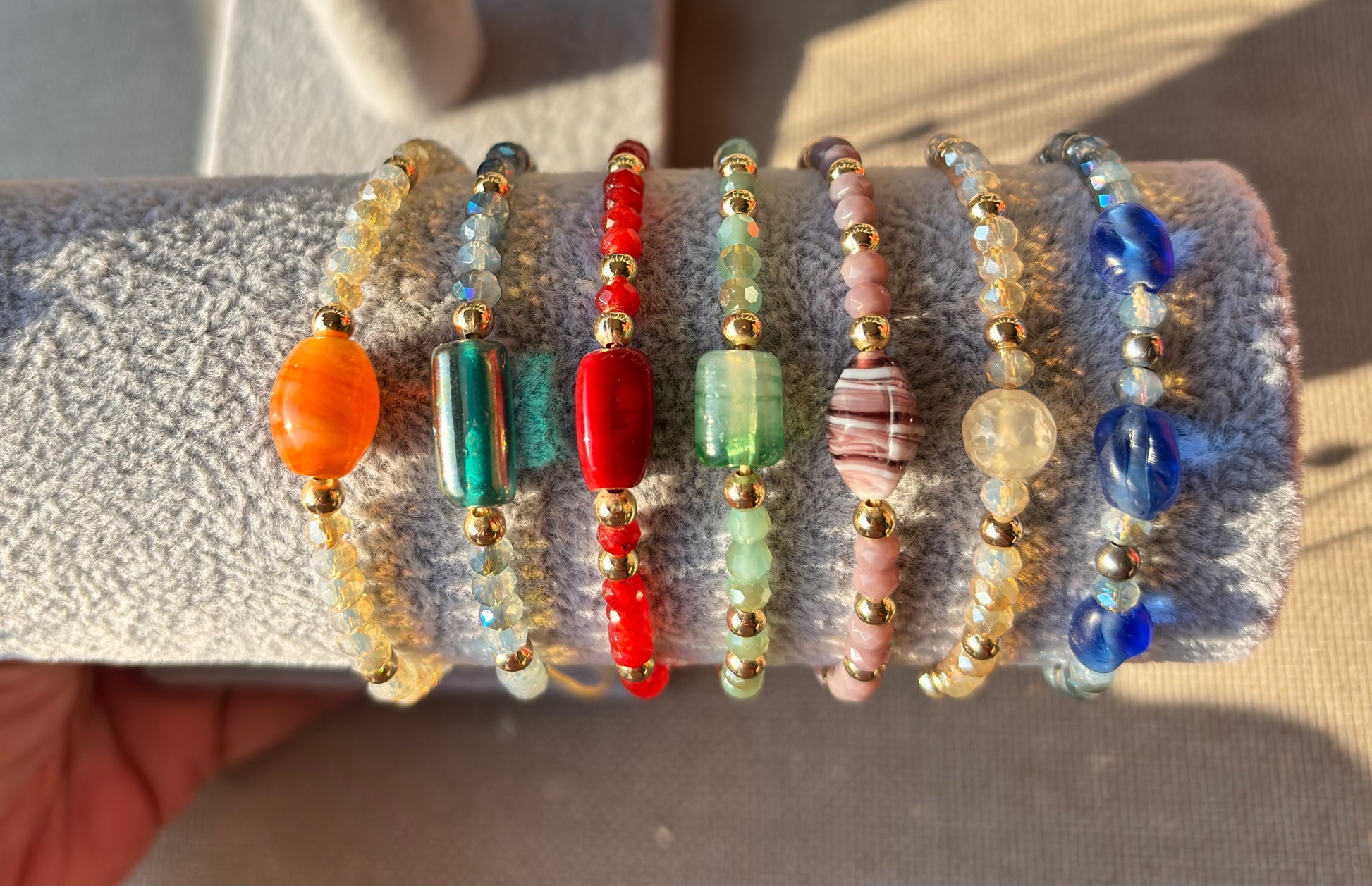 Each bracelet is handcrafted with vibrant glass beads and macrame representing the sparkle of our family's heritage and the pride of our Puerto Rican roots. Perfect as a gift, friendship bracelet, or a meaningful keepsake. These pieces carry a story of love, legacy and tradition.